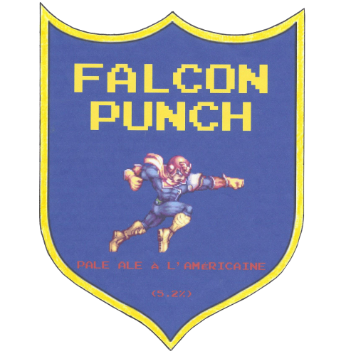 Inspirés par Captain Falcon, un superhéro de jeux vidéo, nous avons décidé de faire une bière rappelant une de ses fameuses répliques lors d'un puissant coup soit: FALCON PUNCH! Le résultat fût une Pale ale à l'américaine à 5.2% bien houblonnée avec une bonne amertume.