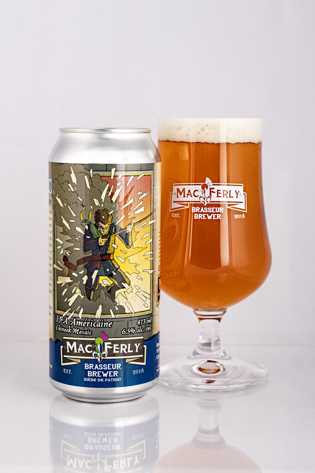 IPA Américaine-Chinook Mosaic. Cette bière vous présente une robe à la couleur d’un jus de pêche, couronnée d’un merveilleux collet de mousse soutenue! Au nez, vous retrouverez des arômes intenses de fruits tropicaux et d’agrumes par l’utilisation de houblons d’origine américaine, le Chinook ainsi que le Mosaïc. En bouche, l’amertume est bien présente sans toutefois être excessive ainsi que des notes de pin et un côté résineux accompagné d’une belle rondeur.