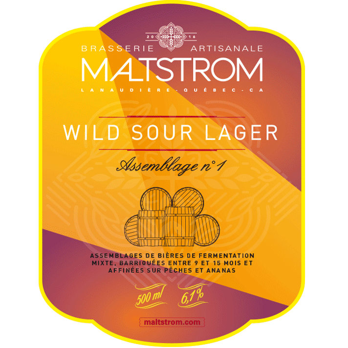 Assemblage de bières de fermentation mixte, barriquées entre 9 et 15 mois, affinées sur pêches et ananas.